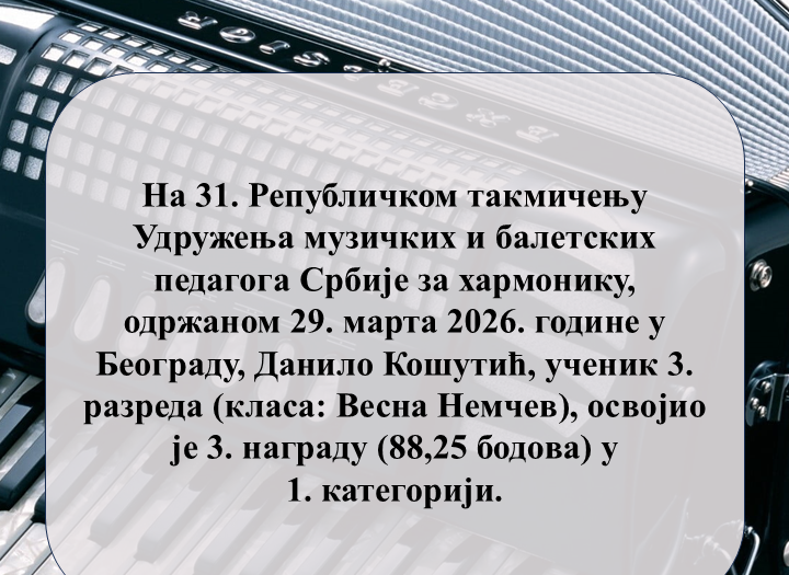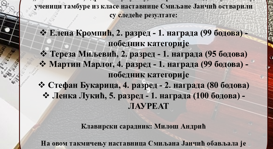Честитамо ученицима тамбуре, њиховој наставници Смиљани Јанчић и клавирском сараднику Милошу Андрићу на оствареним изузетним резултатима!