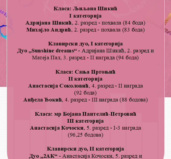 Прочитај вишеРезултати ученика клавирског одсека на Републиком такмичењу