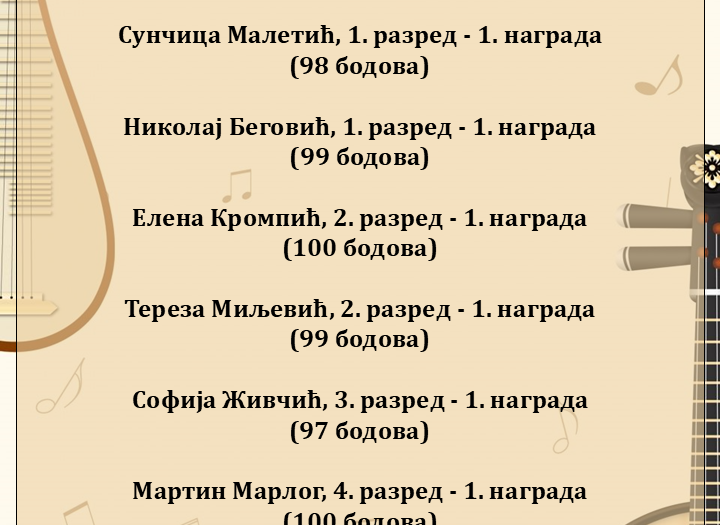 Честитамо ученицима тамбуре, њиховом наставнику Дејану Ћирковићу и клавирском сараднику Бојану Кљајићу на постигнутим резултатима 😊🎶♥️