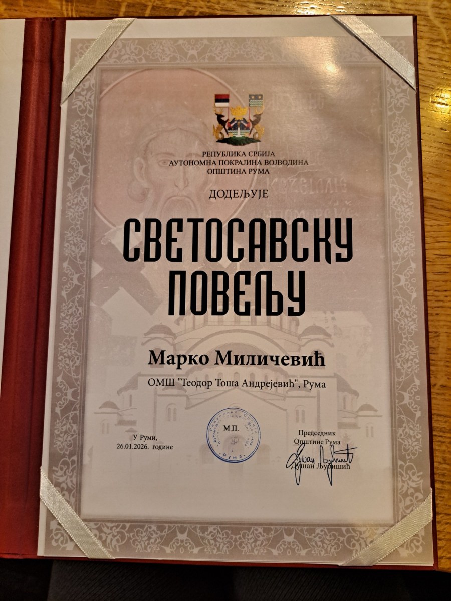 Носилац Светосавске повеље наше школе за школску 2025/2026. годину је ученик 6. разреда саксофона, Марко …