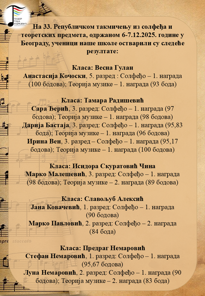 Други концерт у оквиру пројекта „Музиком до једнакости – уметничка музика као инструмент инклузије“, одржан је у суботу, 28.10.2023. године у новој библиотеци у Никинцима. Ученици и наставници наше школе извели су квалитетан музички програм прилагођен дечјем узрасту и тиме обогатили културно-уметнички садржај једне мање средине. ![]()