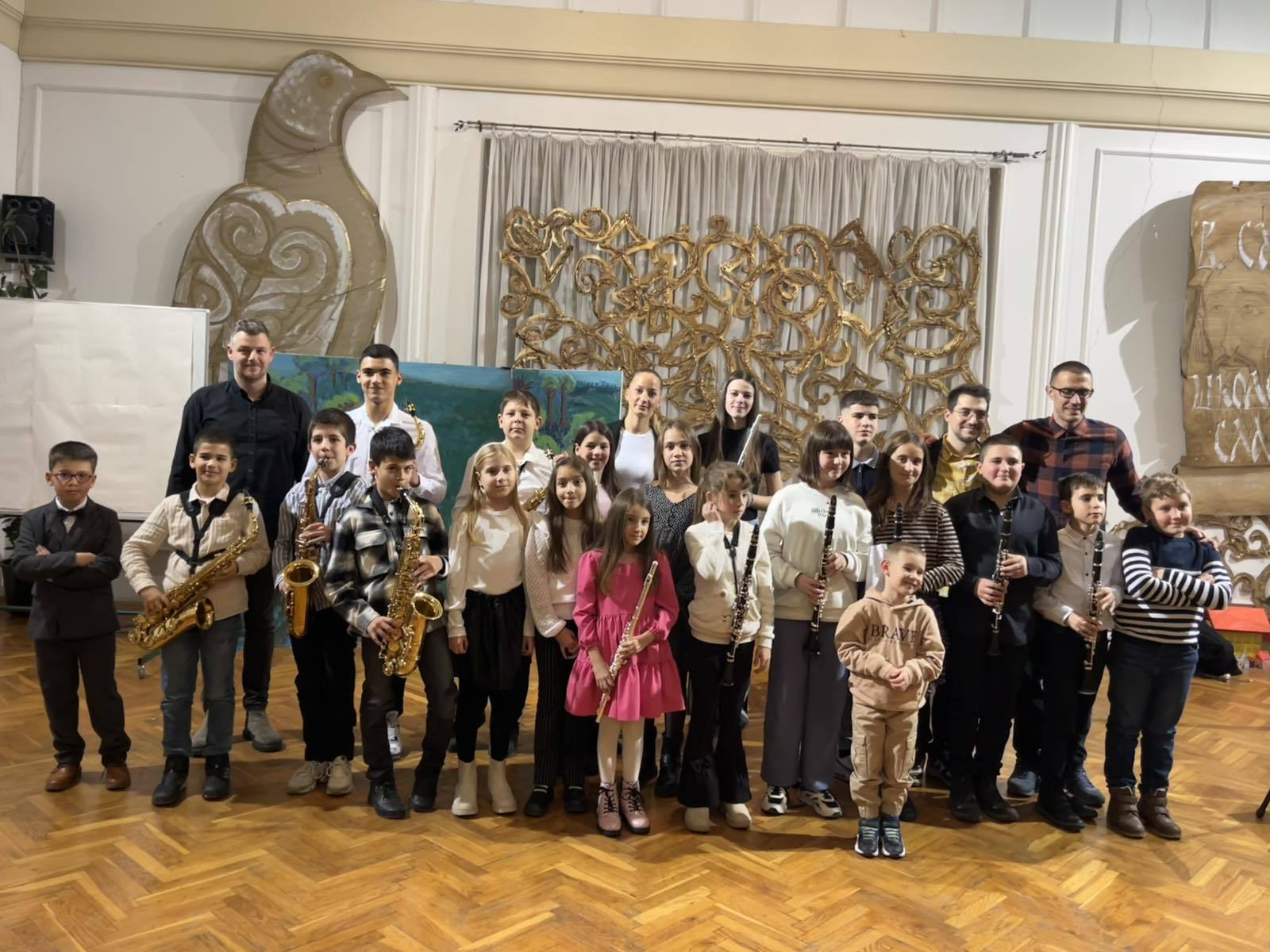 Јавни час ученика дувачког одсека одржан је у понедељак, 24.11.2025. године у свечаној сали ОШ „Душан Јерковић“ у Руми.