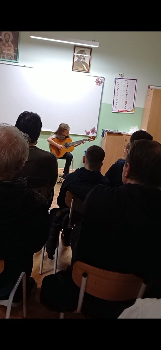 Интерни час ученика гитаре из класе наставника Момчила Саздановића одржан је 3.12.2025. године у Инђији.