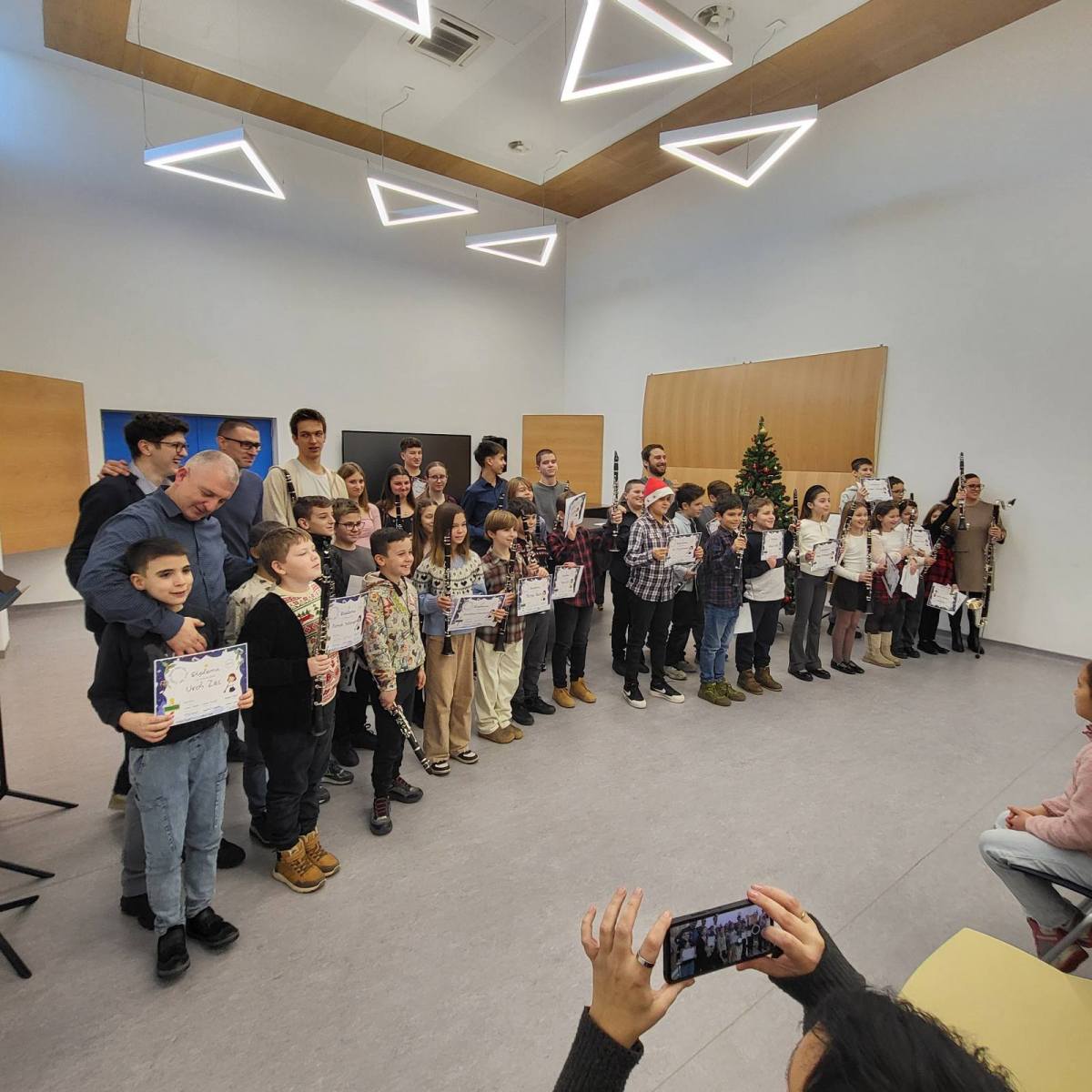 Ученици наше школе и ове године вредно су радили током распуста, те су Давид Васић, 1. разред, Никола Старчевић, Јелена Штула и Вид Огњановић, 3. разред, и Вујадин Пејић и Урош Зец, 4. разред, били полазници Зимске школе кларинета 29-30. децембра 2025. године. Ученици су током ова два дана имали предавања везана за индивидуални рад, рад у камерним ансамблима, рад на хору кларинета, часове са клавирском пратњом, као и концерте полазника и предавача. Један од предавача Зимске школе кларинета био је и њихов наставник, Далибор Лукин. ![]()