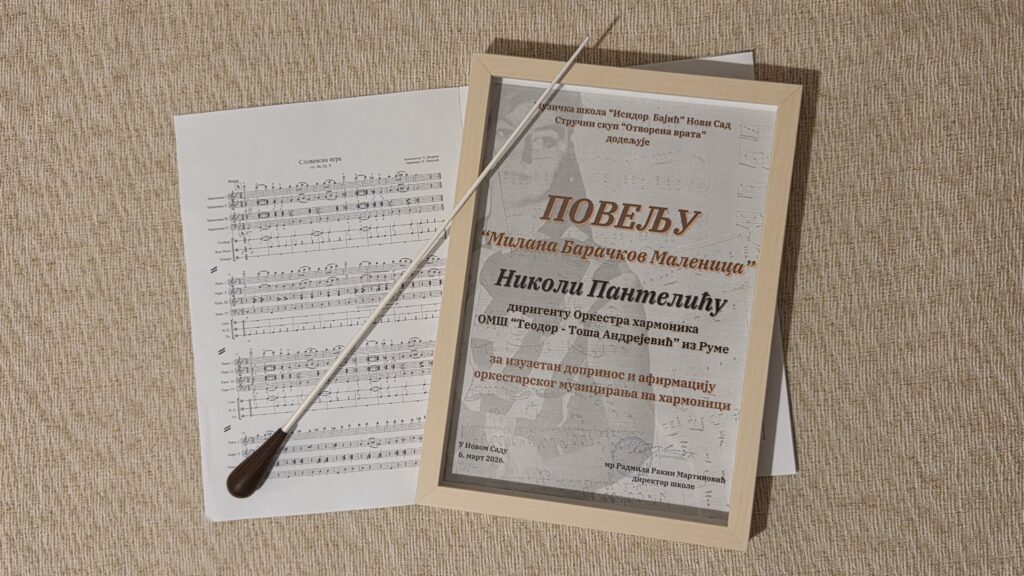 Оркестар хармоника ОМШ „Теодор-Тоша Андрејевић”, под диригентском палицом Николе Пантелића, наступио је 6. марта 2026. године у Градској концертној дворани у Новом Саду на Концерту оркестара хармоника, који је одржан поводом свечаног затварања Стручног скупа „Отворена врата хармонике”. Стручни скуп и концерт организовала је Музичка школа „Исидор Бајић” из Новог Сада, окупивши еминентне педагоге, извођаче и оркестре хармоника. Том приликом диригенту Оркестра хармоника ОМШ „Теодор-Тоша Андрејевић”, Николи Пантелићу, додељена је Повеља „Милана Барачков Маленица” као признање за изузетан допринос развоју и афирмацији оркестарског музицирања на хармоници. „Ова Повеља је подстрек за даљи уметнички рад, али и потврда да су труд и љубав према музици изнад свега.”, истакнуто је приликом уручења.