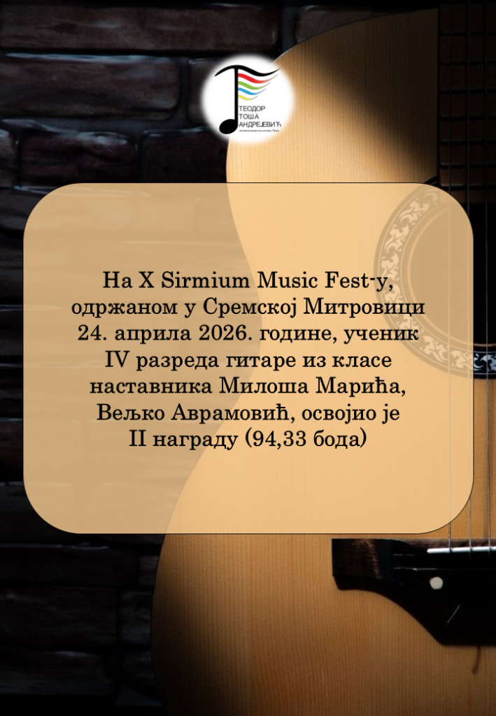 Честитамо ученику Вељку и његовом наставнику на постигнутом успеху! 😊🎶🎶🎶