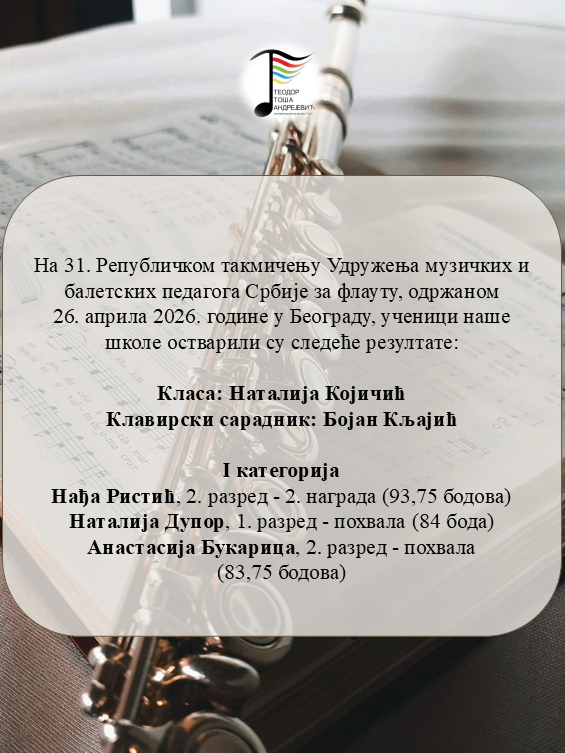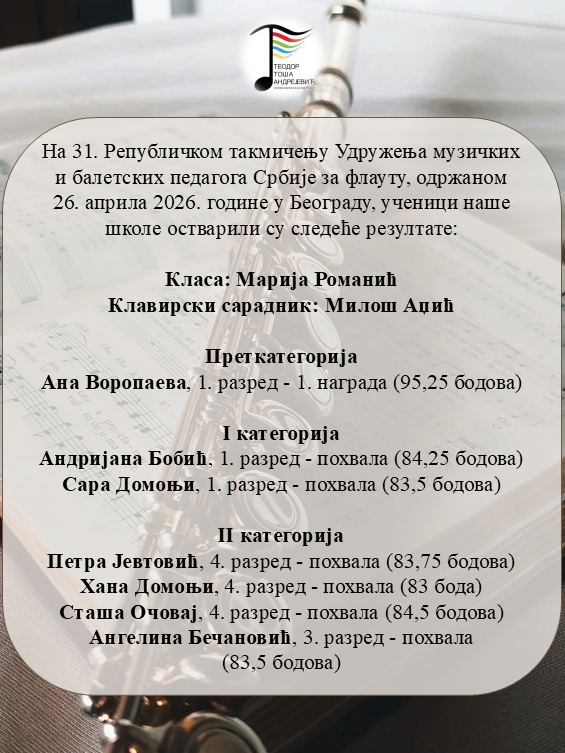 Честитамо ученицама флауте, њиховим наставницима и клавирским сарадницима на оствареним резултатима на Републичком такмичењу! ♥️🎶